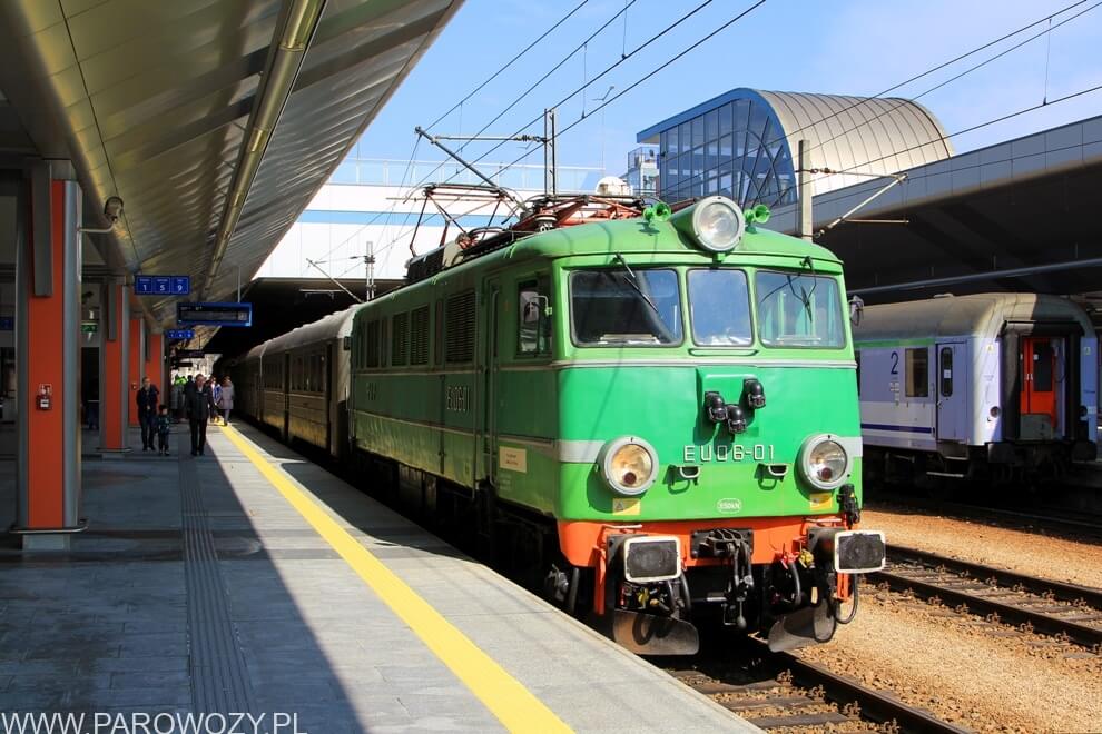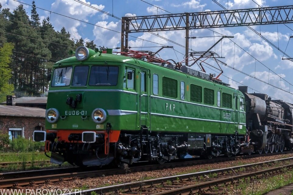 EU06-01 wraz z parowozami z Chabówki zmierza na Paradę Parowozów (’2014) do Wolsztyna, za elektrowozem kolejno Ty42-107, kuszetka, TKt48-191 i Ol12-7. Fotografia dzięki uprzejmości Autora (c) Patryk Farana www.hanys.cal.pl .