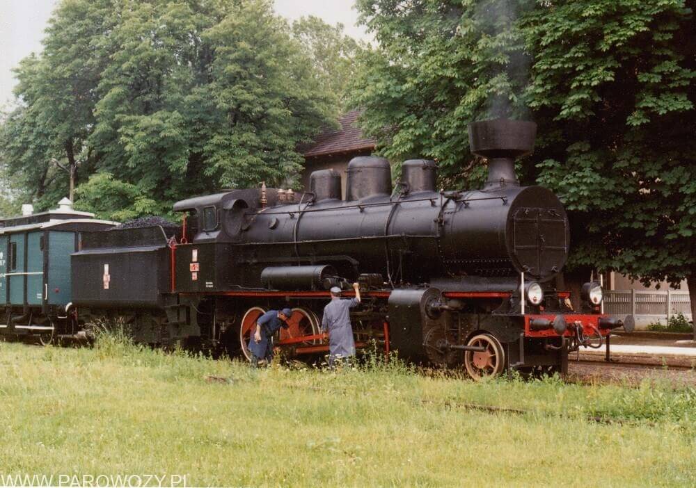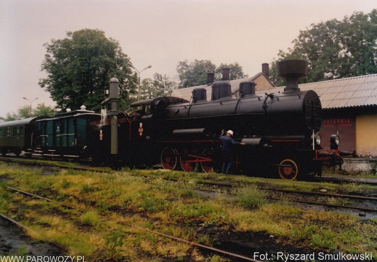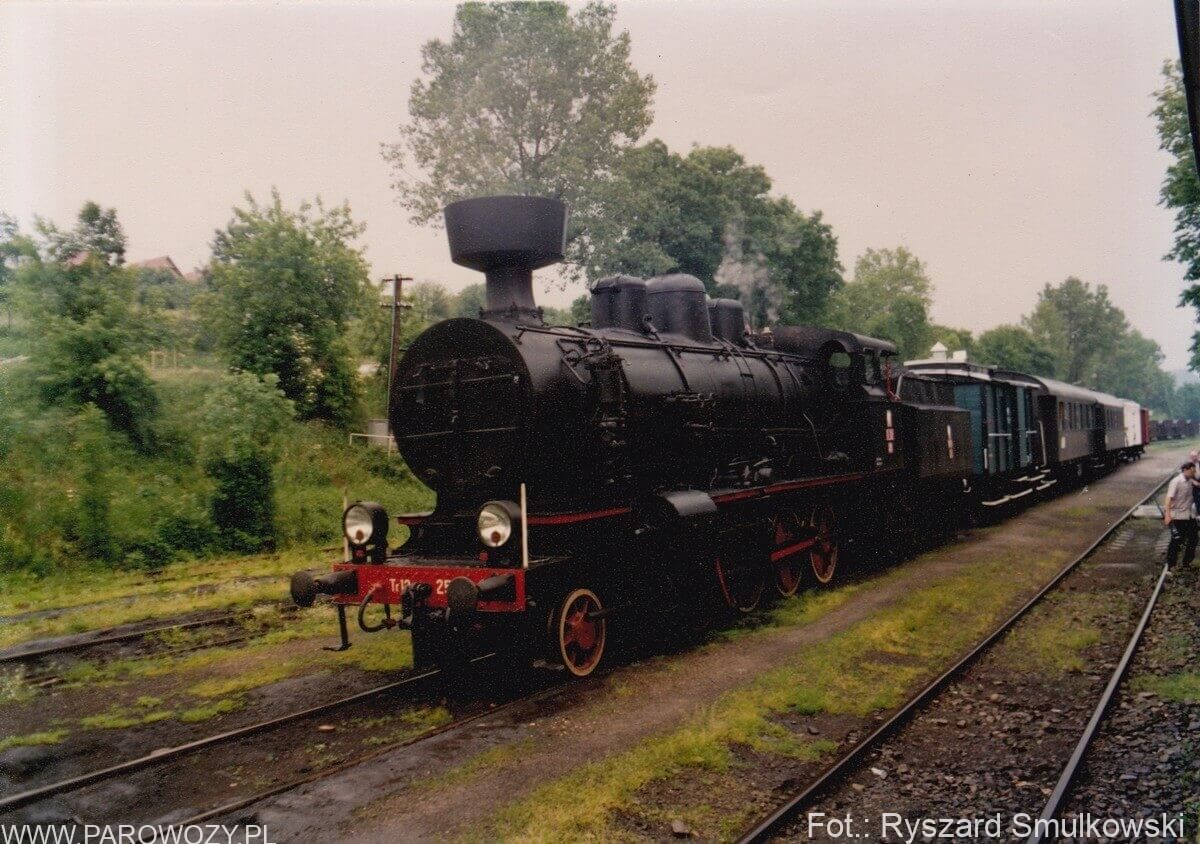 Tr12-25 z pociągiem towarzyszącym otwarciu Skansenu w Chabówce 11.VI.1993roku. Fot.: Ryszard Smulkowski.