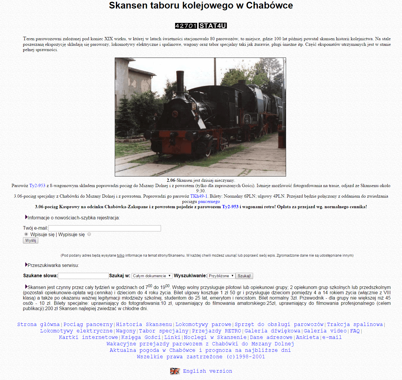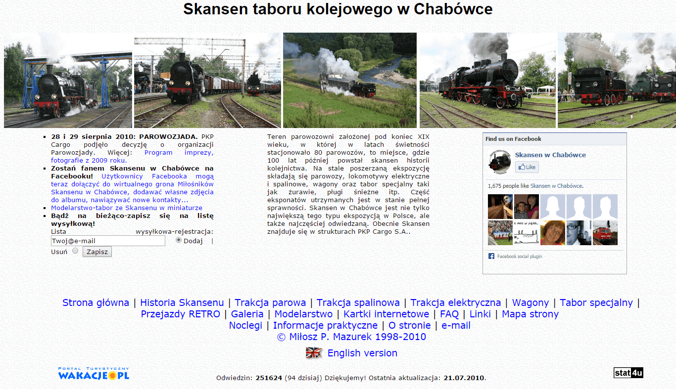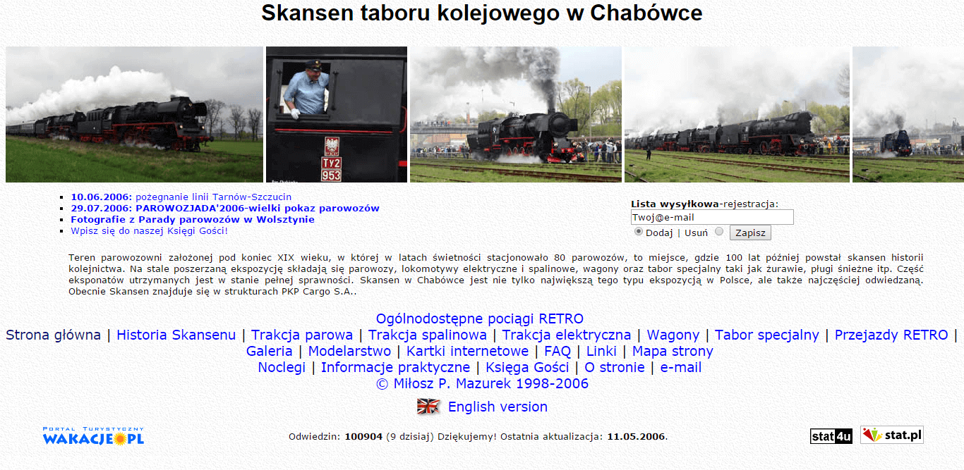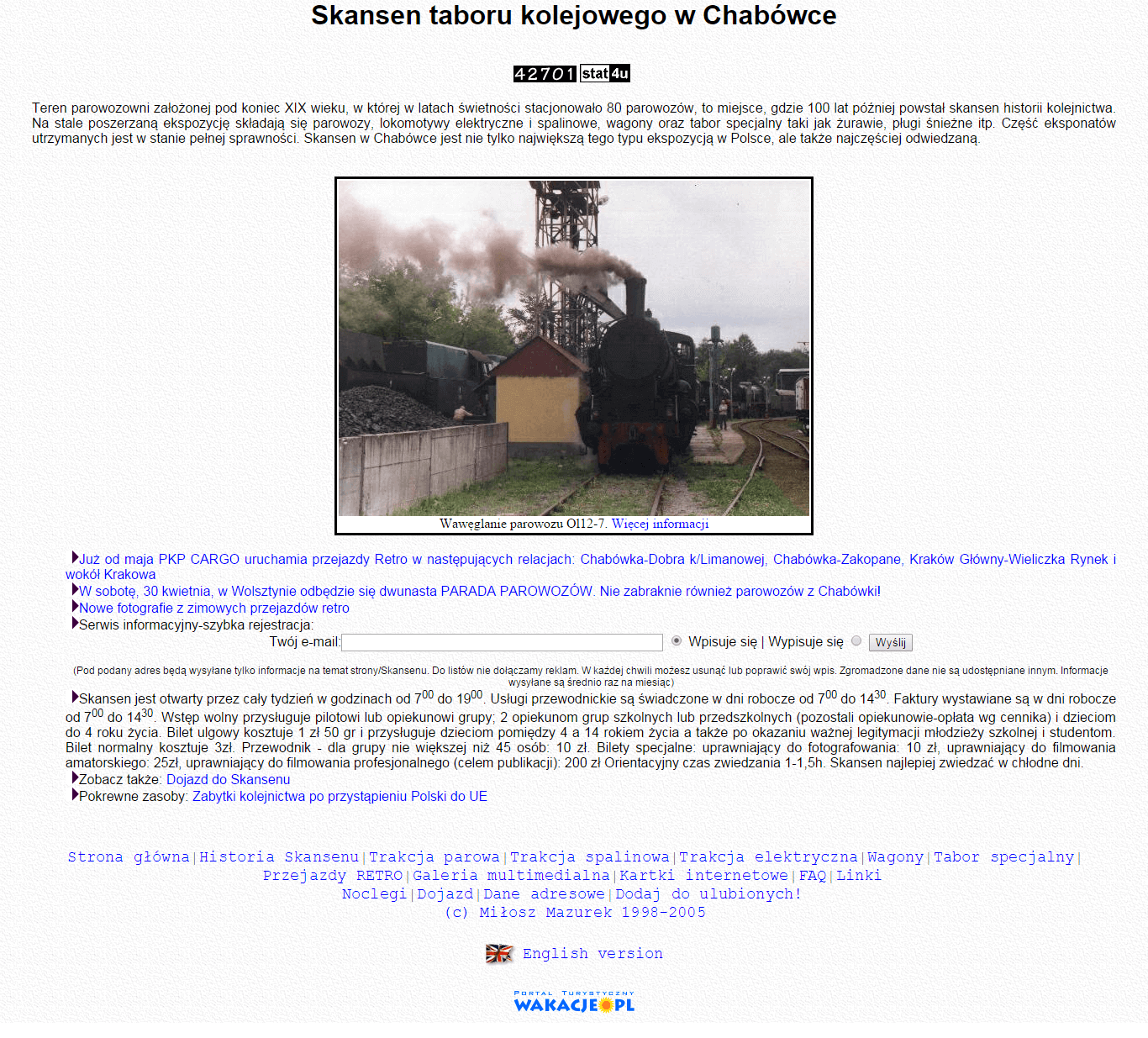 Strona została opublikowana na serwerze Polboxu 31 sierpnia 1998 roku a wkrótce potem została przeniesiona na serwer firmy Koti w Gdańsku. Od kwietnia 2001 roku zmiany wyglądu strony miały charakter głównie kosmetyczny, nie licząc dodania paska ze zdjęciami w 2005 roku. Będąc jedną z najstarszych stron kolejowych w Polsce, wymagała modernizacji. Po kilku tygodniach pracy (nie jestem profesjonalnym webmasterem) i przenoszeniu treści gotowa jest nowa odsłona, w ramach której: